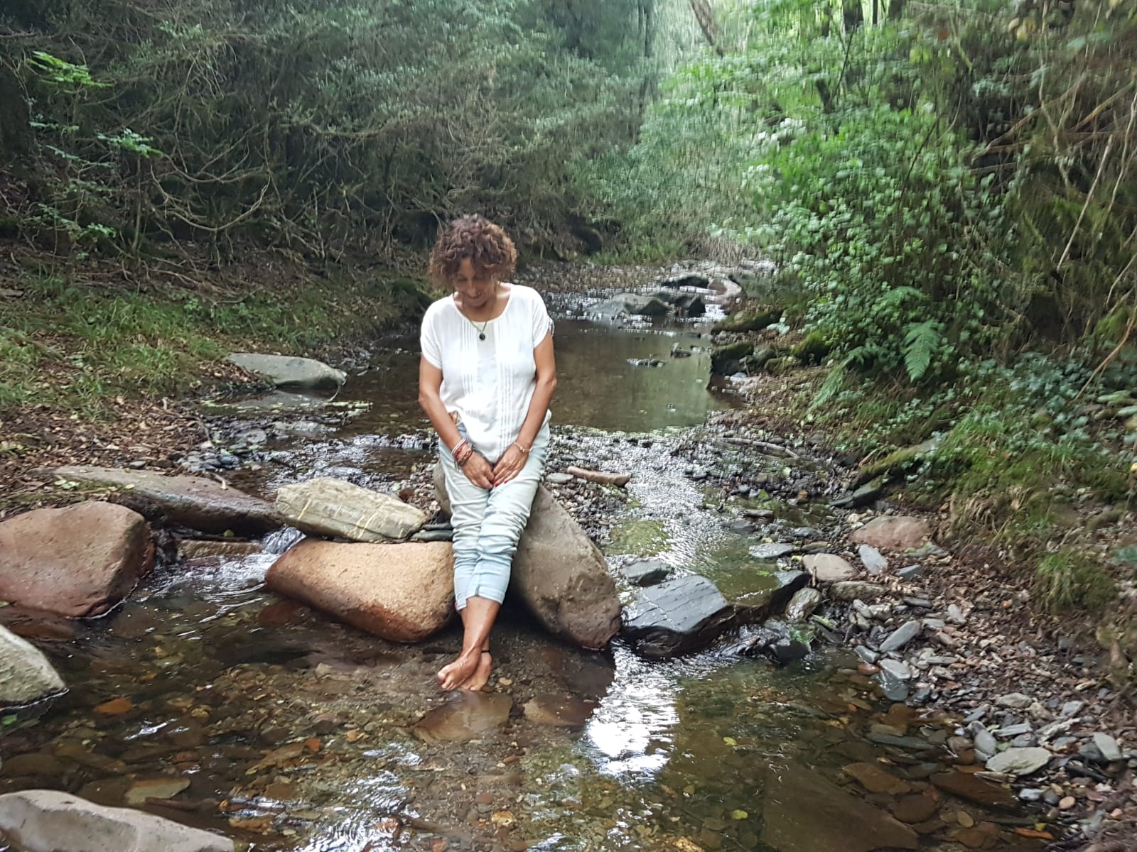 Pero me sigue la luna que de noche a mí me acuna y el silbido de los pájaros y el rumor del agua pura.